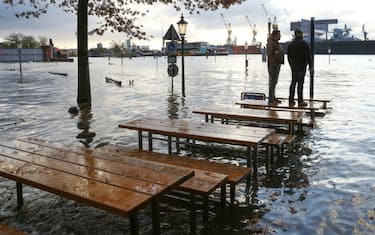 Forti raffiche di vento e tempeste hanno colpito nell'ultimo fine settimana l'Europa centrale e settentrionale, provocando domenica 29 ottobre cinque vittime fra Polonia, Repubblica Ceca e Germania. Nella foto, un quartiere della città di Amburgo completamente inondato -