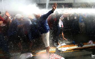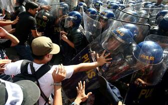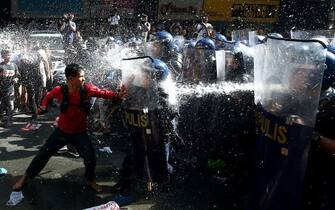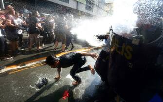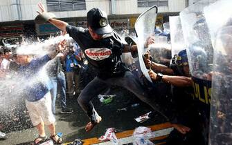È stato accompagnato dalle proteste l'arrivo del presidente Donald Trump nelle Filippine. Le forze di polizia in tenuta anti-sommossa sono dovute intervenire con i cannoni ad acqua per impedire a centinaia di persone di manifestare davanti all'ambasciata Usa di Manila -