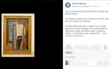 Si tratta di "Composizione con autoritratto", opera dipinta dal maestro italiano nel 1926. La tela appartenente alla collezione Jean Moulin era esposta al Museo delle Belle Arti di Beziers, nel sud della Francia