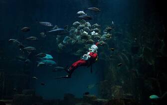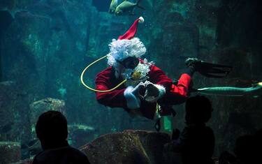 Il 'Santa Claus sommozzatore' è una delle attrazioni natalizie dell'Acquario di Parigi 'Cinéaqua', situato nel cuore della capitale francese -
