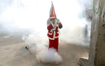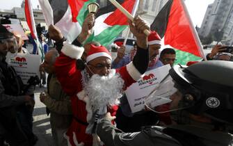 A Betlemme, sabato 23 dicembre, è andata in scena una manifestazione nei pressi del muro che attraversa la città e altre parti della Cisgiordania. La gran parte dei manifestanti palestinesi indossava costumi da Babbo Natale. LA FOTOGALLERY
