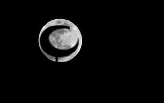 Il simbolo di una moschea copre la superluna nel cielo di Dubai -