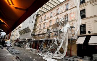 La perturbazione ha toccato il suolo francese nella notte con raffiche che sono arrivate fino a 150 chilometri all’ora. Solo nella mattinata sono stati effettuati 4300 interventi da parte dei vigili del fuoco. Nella foto alcune impalcature crollate a causa del forte vento nel diciassettesimo Arrondissement di Parigi –