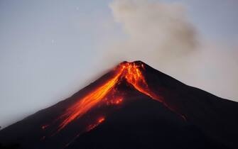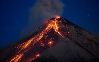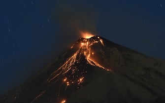 Un’immagine del vulcano durante la sua eruzione, l’1 febbraio 2018. Il vulcano è anche situato vicino ad Antigua Guatemala, una delle località turistiche più frequentate e conosciute in Centro America -