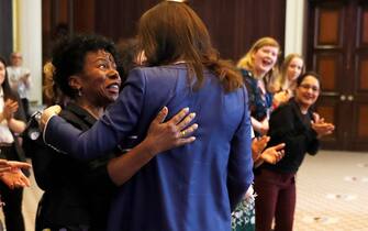 Al Royal College di Londra, la duchessa di Cambridge ha incontrato e abbracciato calorosamente la professoressa Jacqueline Dunkley-Bent, la quale faceva parte del team che aiutò Kate a partorire Charlotte -