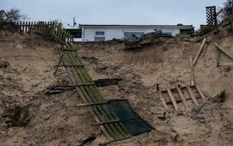 Abitazioni in bilico sulla costa erosa dal forte vento e dalle mareggiate. Le immagini arrivano da Hemsby, paese di poco più di tremila abitanti nel Norfolk, sull costa orientale dell'Inghilterra. LA FOTOGALLERY