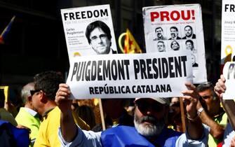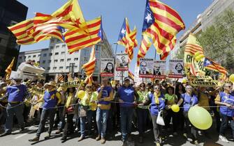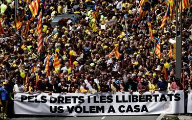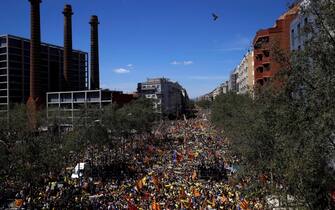 Sono migliaia le persone che si sono ritrovate in piazza a Barcellona per la marcia di protesta contro gli arresti e la detenzione di molti leader politici catalani -