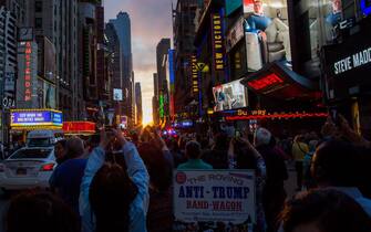 Cittadini e turisti si sono appostati per ammirare il fenomeno che incrocia natura e schema urbano della Grande Mela. A cavallo del solstizio d'estate, il Sole si allinea perfettamente con le strade che attraversano il distretto di Manhattan. FOTO - VIDEO