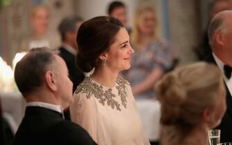 Durante tutto il 2017 Kate viaggia con il marito in diversi paesi esteri tra cui Francia, Polonia, Germania e Belgio. A maggio la duchessa visita il Lussemburgo per il 150mo anniversario della firma del Trattato di Londra. A fine gennaio 2018 la coppia reale è protagonista di un tour in Svezia e Norvegia. Nella foto, Kate durante una cena al Palazzo Reale di Oslo, Norvegia, il primo febbraio del 2018 -