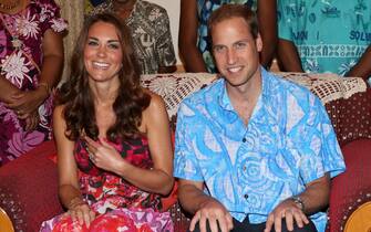 Come in altre diverse occasioni, anche il viaggio asiatico rappresenta un momento per William e Kate di affiancare momenti di svago agli impegni più ufficiali. Anche questa volta i due non hanno rinunciato a indossare i vestiti caratteristici dei Paesi che li hanno accolti. Nella foto, Kate e William in abbigliamento tradizionale delle Isole di Solomone, mentre visitano la casa del Governatore Generale durante il loro tour Diamond Jubilee. È il 16 settembre 2012 a Honiara, nell'isola di Guadalcanal -