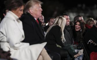 Il presidente americano Donald Trump e la first lady Melania hanno acceso per la seconda volta l'albero di Natale nazionale nell'elisse del parco a sud della Casa Bianca -