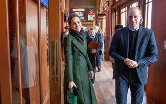 Il duca e la duchessa di Cambridge sono stati sorpresi da un leggero nevischio che li ha costretti a ricorrere agli ombrelli -