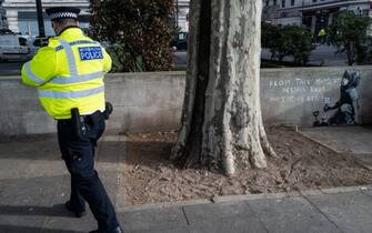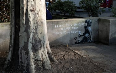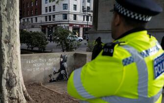 L’opera è apparsa a Londra nelle ore successive alle manifestazioni di protesta del movimento.