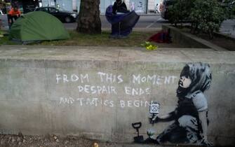 Una nuova opera attribuita a Banksy è apparsa a Londra. Un bambino tiene in mano il simbolo del movimento socio-politico contro i cambiamenti climatici e l’estinzione umana, Extincion Rebellion (XR), accovacciato vicino ad una piccola pianta. Nel disegno è presente anche la frase: “Da questo momento finisce la disperazione e iniziano le tattiche”