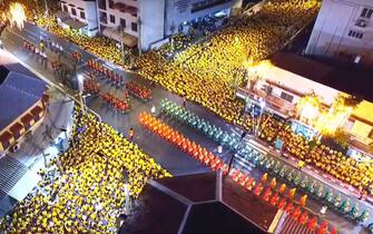 L'evento è stato seguito da decine di migliaia di thailandesi, vestiti di giallo in onore della monarchia, che sono accorsi ai bordi del percorso lungo sette chilometri –