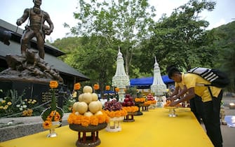 Thailandia, la cerimonia dei calciatori nell'anniversario della caduta nella grotta