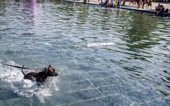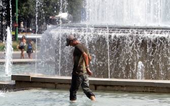 Non viene risparmiata dalla morsa del caldo nemmeno l'Italia, dove le temperature sfiorano 50 gradi nelle regioni di Sud e Centro. A Milano (foto), intanto, la polizia locale ha detto "stop" ai bagni nella fontana del Castello Sforzesco