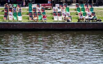 Sempre in Germania, anche a Berlino turisti e cittadini soffrono il caldo e cercano di rinfrescarsi lungo il fiume Spree