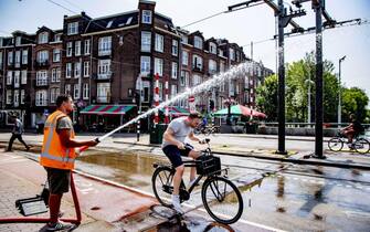Un'altra immagine da Amsterdam dove gli esperti hanno lanciato l'allarme dovuto alle alte temperature invitando i cittadini a evitare quanto più possibile di uscire