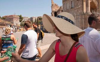 Emergenza caldo anche a Roma, dove la Protezione civile ha predisposto la distribuzione di acqua in bottigliette di plastica in centro, in Via Dei Fori Imperiali e sotto al Colosseo