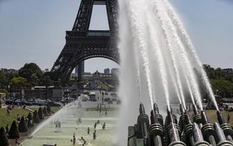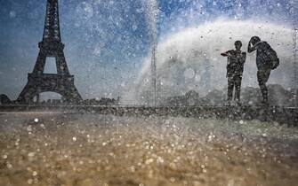 I turisti presenti nella capitale francese hanno cercato sollievo nella fontana del Trocadero, vicino alla Tour Eiffel