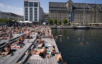 Come in altre città europee, anche a Copenhagen gli abitanti e i visitatori hanno raggiunto i corsi d'acqua per rinfrescarsi. Nella foto: la zona di fronte al Teatro Nazionale