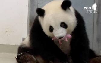 “Siamo così felici, non abbiamo parole”, ha scritto lo zoo di Berlino su Twitter dando l’annuncio della nascita (la mamma Meng Meng in una foto di qualche settimana fa)