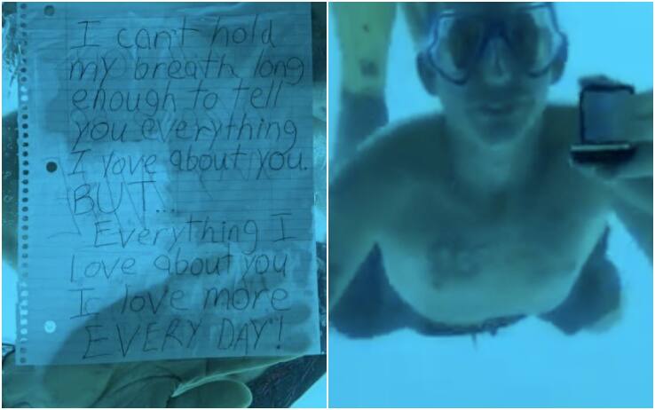I due giovani erano ospiti di un resort in Tanzania, che offre anche la possibilità di soggiornare in una “underwater room”, un bungalow con finestre sott’acqua che consentono di ammirare i pesci dell’oceano. Nelle immagini si vede Weber che si avvicina proprio a una delle finestre della camera sottomarina e mostra il messaggio scritto su un foglio e protetto dentro la plastica: "Posso trattenere il fiato abbastanza a lungo da poterti dire ti amo - si legge nella lettera - ma soprattutto che amo tutto di te e di amo ogni giorno di più". Poi la fatidica domanda: "Per favore, vuoi diventare mia moglie. Mi vuoi sposare?". Nel risalire però qualcosa è andato storto, il giovane non è riuscito già a riaffiorare.