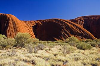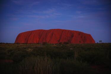 Uluru è un monolite di arenaria rossa di 248 metri, circondato da una piana arida e visibile, per questa ragione, anche da diversi chilometri di distanza
