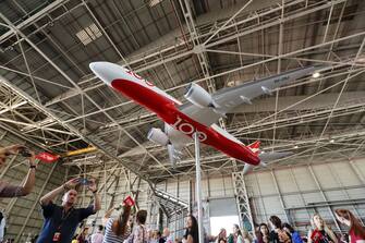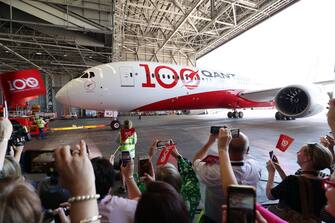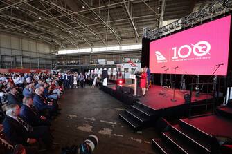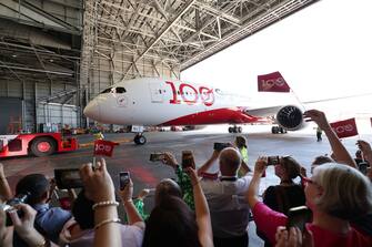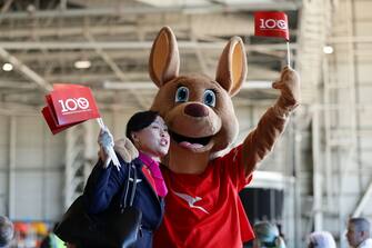 Una volta che l'aereo è atterrato a Sydney, sono potute cominciare le celebrazioni in programma in occasione del centenario della compagnia di bandiera australiana