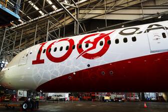 Per l'occasione il Boeing 787-9 è stato decorato con la livrea del centenario e tutti i loghi di Qantas dalla fondazione nel 1920 a oggi, incluso il celebre canguro volante