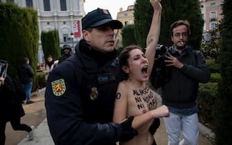 Protesta delle Femen in Spagna durante la commemorazione per la morte del dittatore Francisco Franco