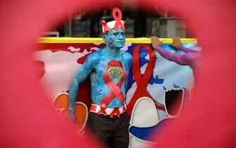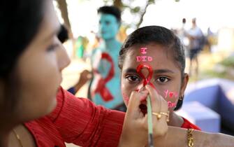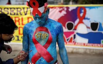 In India gli attivisti si sono fatti pitturare il corpo dall'artista Debasish Sarkar, per lanciare messaggi di sensibilizzazione a favore della campagna contro l'Aids