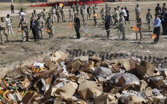 Le autorità cambogiane hanno organizzato un evento per la distruzione di tonnellate di prodotti contraffatti, alla periferia della capitale Phnom Penh