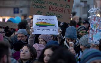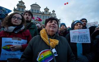 Nella foto: la manifestazione a Bruxelles. Altre manifestazioni sono andate in scena anche a Londra e Berlino, passando per Helsinki. Mentre a Roma migliaia di persone hanno aderito all'evento in piazza San Giovanni