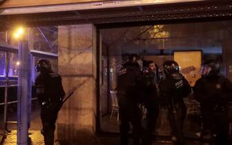I manifestanti avevano per lo più i volti coperti e, all'arrivo dei Mossos d'Esquadra, si sono trincerati dietro dei cassonetti della spazzatura che poi hanno dato alle fiamme