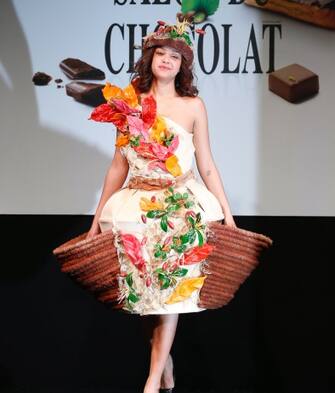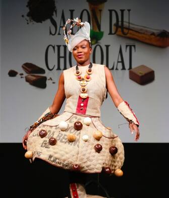 Una sfilata di abiti fatti di cioccolato. Accade al Salon du Chocolat di Bruxelles, una delle fiere dedicate al cacao più importanti del mondo