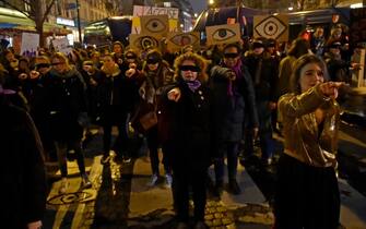 Le manifestanti, molte di un gruppo di attiviste femministe, hanno fatto anche una danza ispirata al gruppo cileno femminista “Las Tesis”. Sono state respinte dalla polizia