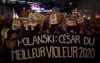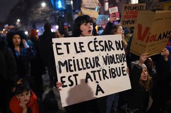Prima della cerimonia, fuori dalla Salle Pleyel di Parigi si sono radunate un centinaio di persone per contestare il record di 12 nomination al film di Polanski, diventato ormai un bersaglio della contestazione delle donne in Francia