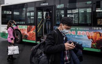 Da sabato, invece, sei linee della metro, sotto disinfezione da lunedì, dovrebbero cominciare a funzionare. (Nella foto passeggeri di un autobus a Wuhan)