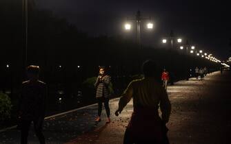 Il verde indica l'assenza di rischi. (Nella foto alcune persone passeggiano all'Hankou Beach Park di Wuhan)