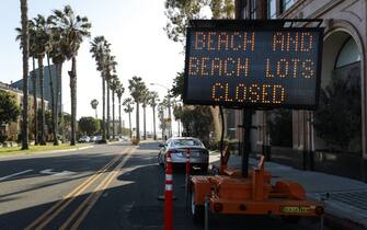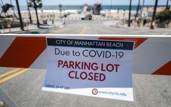 Nel parcheggio di Manhattan beach, a Los Angeles, è stato affisso un cartello: "Chiuso a causa del Covid-19"