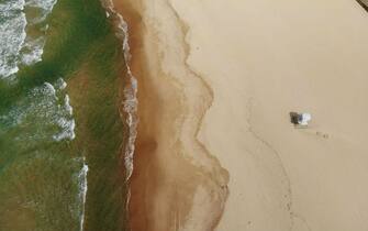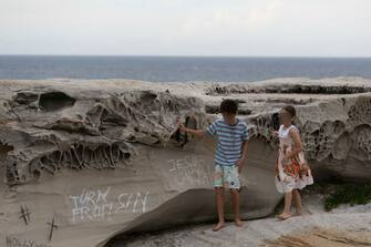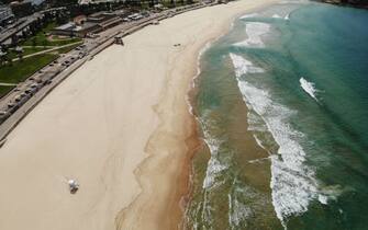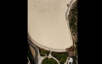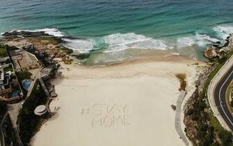 Nella foto la scritta "Stay Home" (State a casa) sulla spiaggia di Tamarama a Sydney