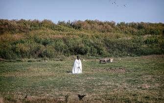 A Soweto, nella città di Johannesburg, in Sudafrica un sacerdote celebra la messa in un campo deserto
