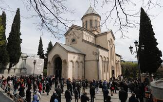 Nella cattedrale ortodossa di Tbilisi, in Georgia, il rito religioso per la Pasqua si celebra all'esterno della struttura