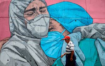 Dagli Stati Uniti all’Italia, dal Messico alla Germania: in diverse città del mondo nelle ultime settimane sono comparsi murales a tema coronavirus. In foto un murales a Santa Monica, California