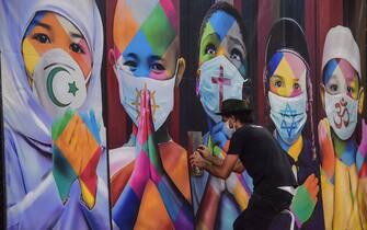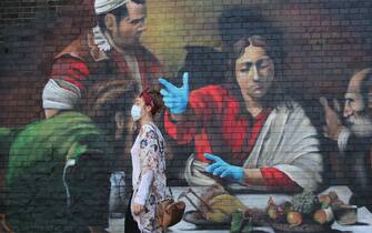 Altri murales invitano invece a rispettare le regole di sicurezza anti-contagio, dal distanziamento sociale all'uso delle mascherine. In foto, un’opera a Los Angeles, California