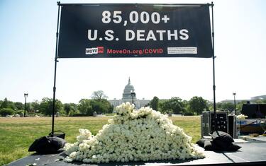 La protesta è stata organizzata dal movimento Move on. Davanti al Campidoglio è stato piazzato anche uno schermo che proietta alcune frasi del presidente e ricorda la cifra di 85mila vittime di Covid19 raggiunta dagli Stati Uniti