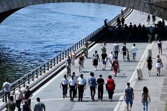 Con le giornate di sole molti francesi approfittano del lungo week-end festivo con il ponte dell'Ascensione per fare una prova di ripartenza dopo il lockdown, che si è concluso una decina di giorni fa. C'è chi al mare si è posizionato negli spazi segnalati, chi ha scelto una scampagnata in montagna e altri un pranzo sulle rive della Senna