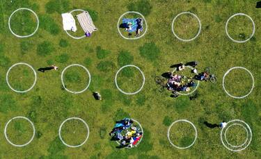 Il Recreation & Parks Department ha tracciato i segni sull'erba per permettere ai cittadini di abitare il parco in sicurezza. LA FOTOGALLERY